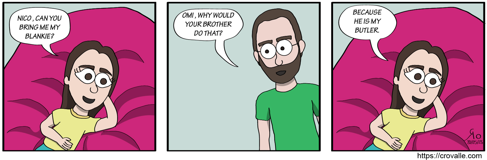 Lo que en verdad pasó fue Nico balbuceando en francés, Omi acusándolo de decir una grosería en inglés y su mamá diciéndoles que no dijeran eso en español. Luego por hacerse el chistoso, Nico empezó a repetir la grosería en inglés sin saber lo que decía, sólo haciéndolo porque se le dijo que no.
